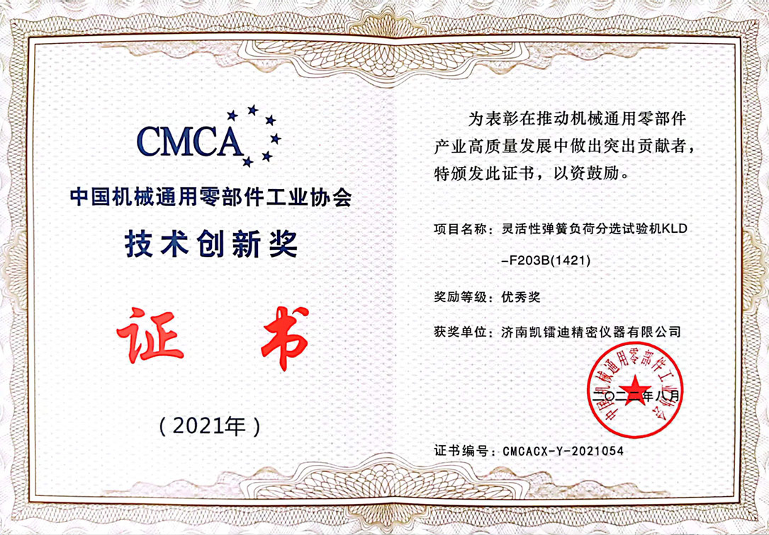 機械通用零部件技術創新優秀獎 - 濟南凱鐳迪彈👩🏽‍🐰‍👩🏿簧有限公司